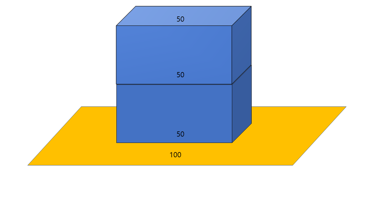 100평방미터의 부지가 있습니다. A는 건물을 짓고 싶어합니다. 그래서 50평 대지를 차지하는 네모난 2층 건물을 지으려고 합니다.